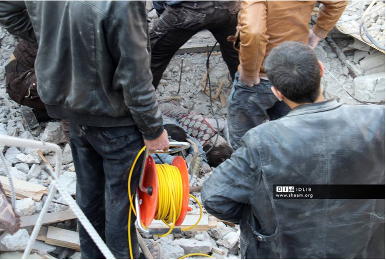 According to RFS, “media activist Omar Haj Ahmed from the town of Maara Hrema said that the town woke up to three heavy air raids by the Russian warplanes at five o’clock in the morning, which led to the massacre of a terrible killing 10 civilians, including nine children and an elderly woman. A large number of wounded civilians were trapped under the rubble.”