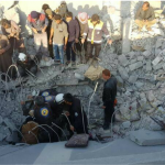 “But two hours later, a warplane believed to be Russian, bombed the location again with a missile close to the scene of the massacre. The warplane then return and helled the paramedics’ compound and the civil defense team, causing material damage to two ambulances and a rescue vehicle. The renewed shelling meant that the area had to be evacuated and halted the rescue operation. After about an hour later, the civil defence team and paramedics were finally able to complete the rescue operation, lifting the rubble and recovering seven victims – six children and one woman”.