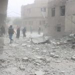 Enab Baladi reported through the civil defence that “three guided missile strikes and a cluster missile targeted the towns of Kafar Batna and Saqba in conjunction with the bombing of the town of Hamuriya, which led to the injury of dozens of civilians”.