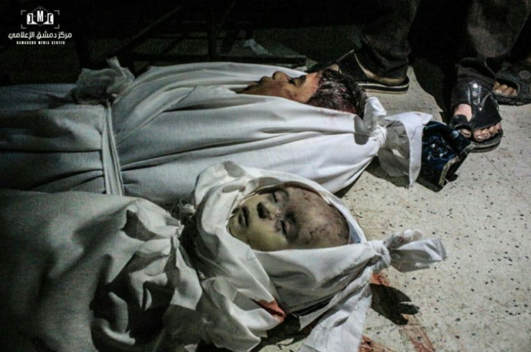 According to RFS Media Office, “Russian air force fighter jets bombed the city of Arbeen in the eastern Ghouta with more than 10 air strikes using dozens of space rockets, resulting in the deaths of eight civilian martyrs, including five children and two women.”