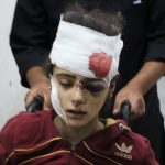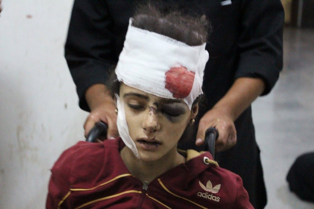 Syrian Network for Human Rights published an image of an injured child and reported that “The girl Aya al Hasan wounded in suspected Russian warplanes missiles fired on al Quneitra village in Idlib governorate western suburbs, the shelling resulted in the death of her 2 sisters Salma and Malak and her grandmother. Additionally, a number of her family members have serious injuries on September 25, 2017.”