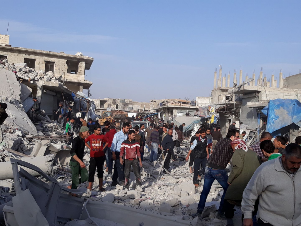 In a mass civilian casualty event, as many as 82 civilians were killed, and 340 more were wounded, when six surface rockets and three missiles struck a popular market in Atareb. Sources blamed both the Syrian regime and Russia for these raids.