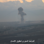 According to Smart News Agency and Fresh News, both citing sources on the ground, the warplanes launched four airstrikes, striking the headquarters of “Al Ezza Army” which belongs to the Free Syrian Army.