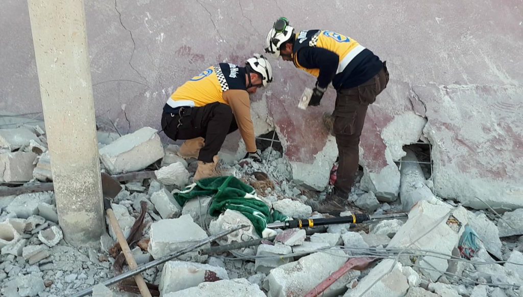 Rocket-propelled grenades reportedly left many civilians trapped under the rubble; most of them were women and children. Wounded were “were transferred to the hospital Maarrat Noman for treatment”.