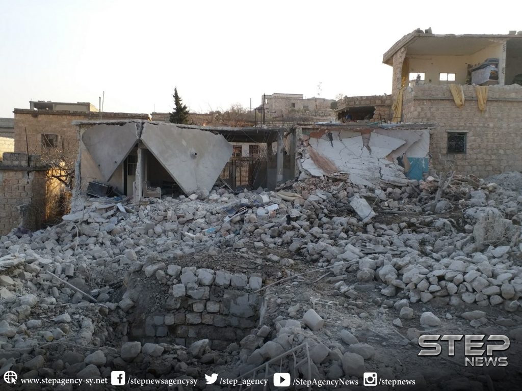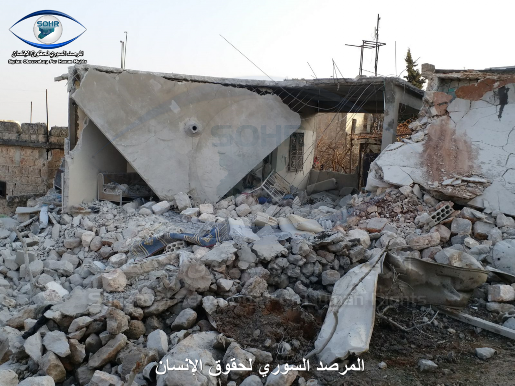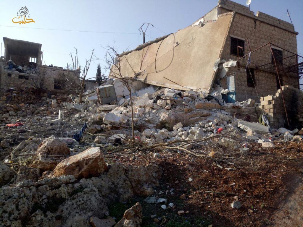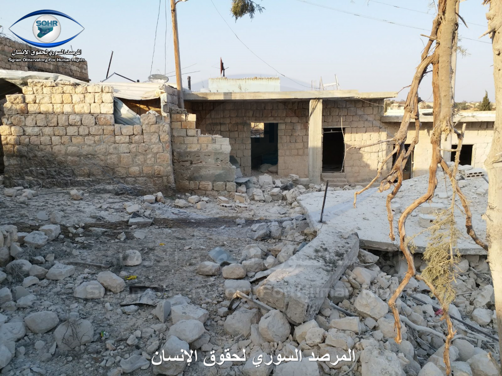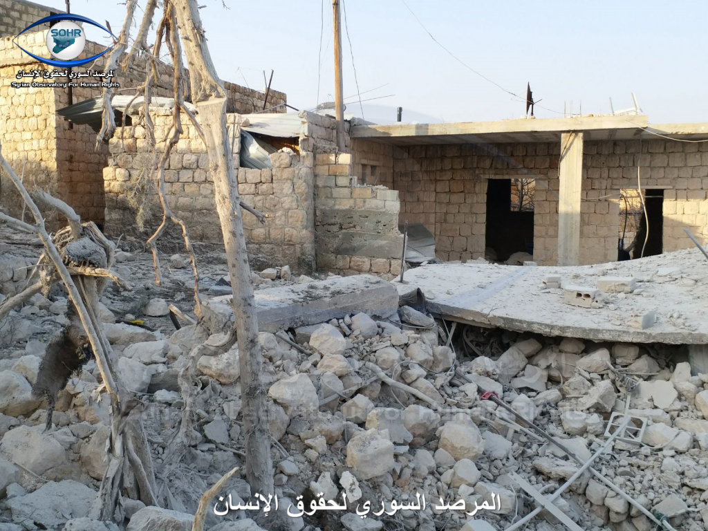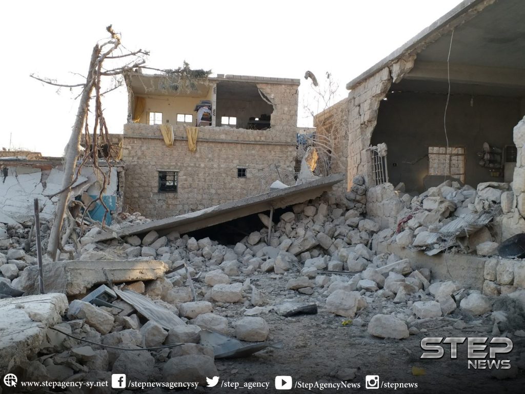 Three to four civilians were reported killed and as many as ten civilians were injured in alleged Russian and Syrian regime raids on Sarja. A woman was included in the injured, an a child was included in the death toll. Sources blamed both the Syrian regime and Russia fo the strikes. One source blamed an anonymous “airforce”.