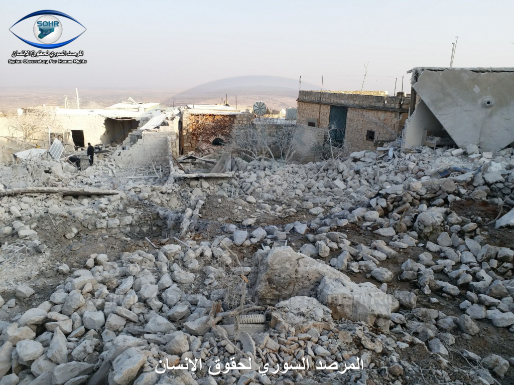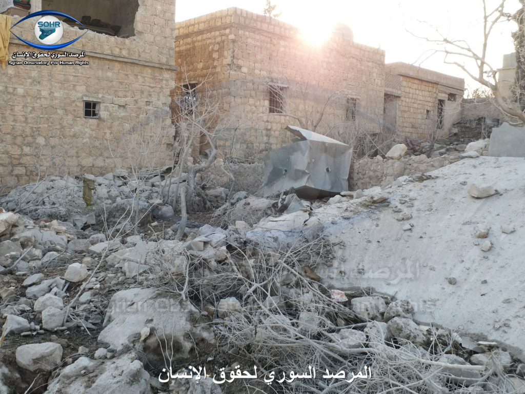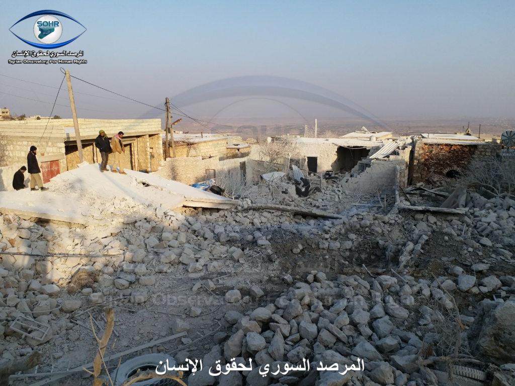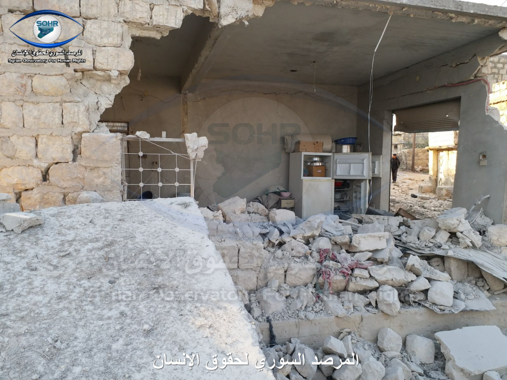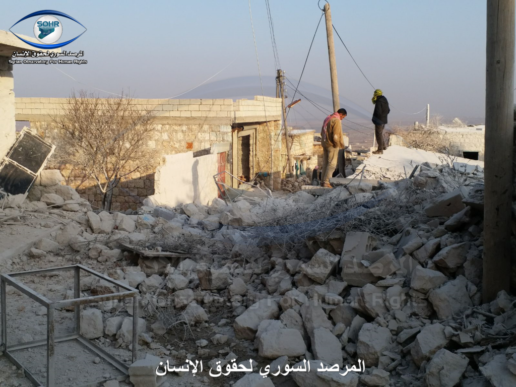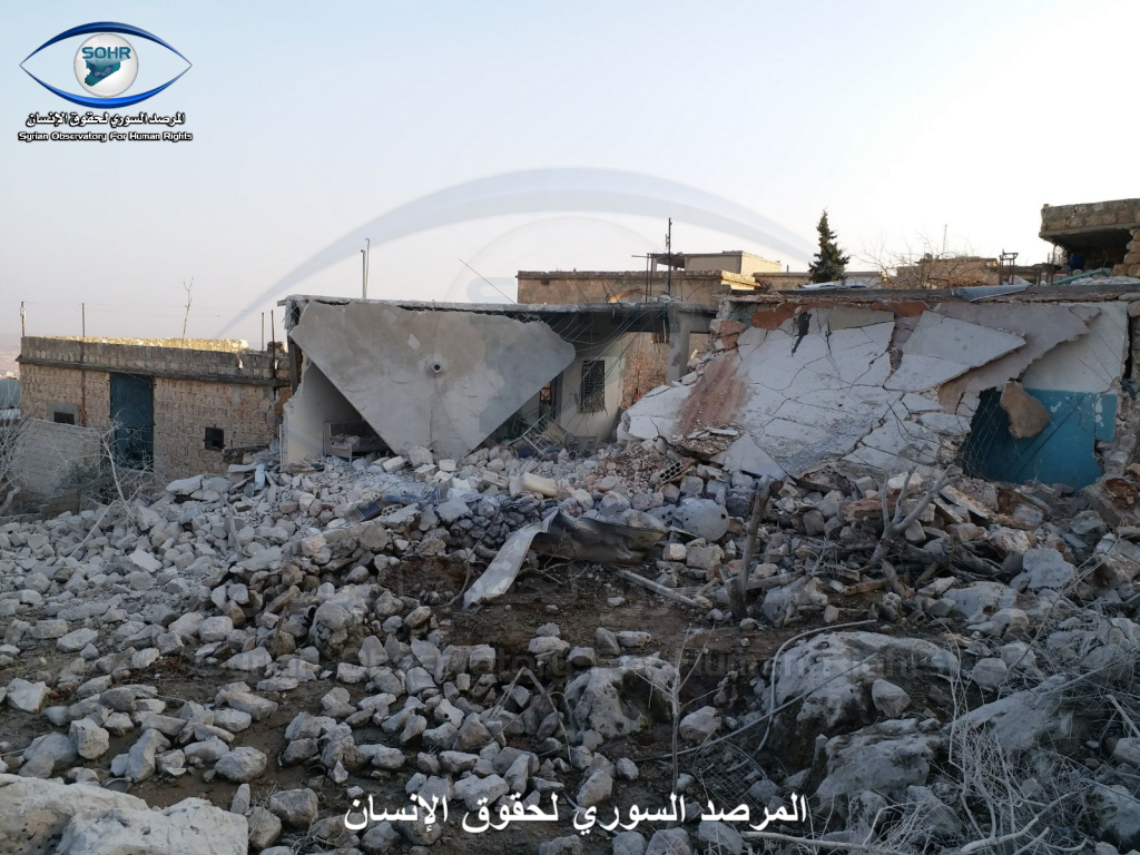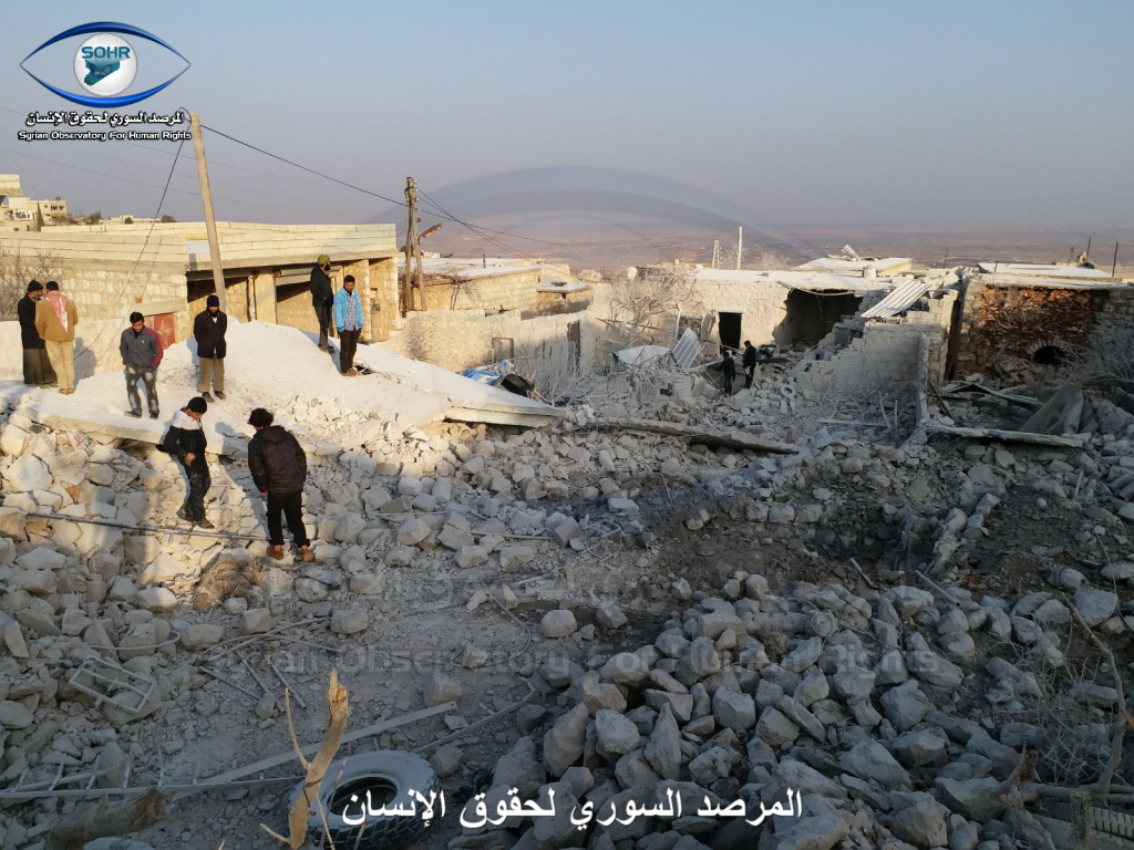 Three to four civilians were reported killed and as many as ten civilians were injured in alleged Russian and Syrian regime raids on Sarja. A woman was included in the injured, an a child was included in the death toll. Sources blamed both the Syrian regime and Russia fo the strikes. One source blamed an anonymous “airforce”.