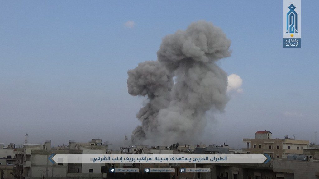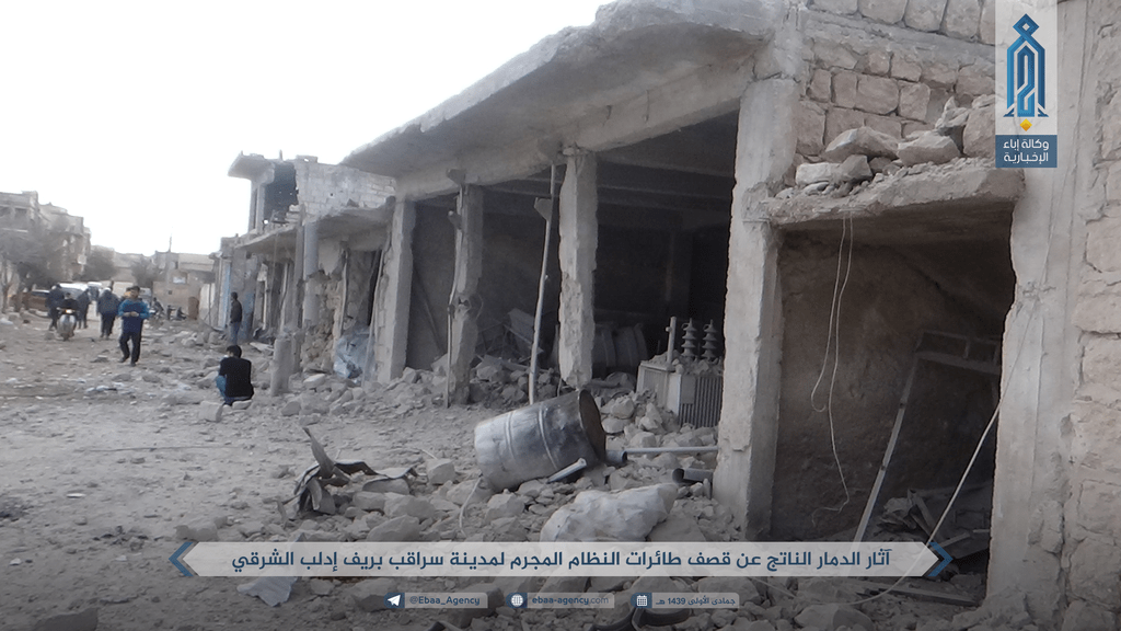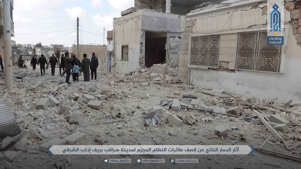 Nine civilians were killed, and dozens more were wounded, in airstrikes which hit a residential neighbourhood in Saraqeb in the morning, according to local media. Sources blamed both the Syrian regime and Russian warplanes for the airstrikes.