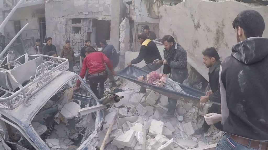 According to local reports, the incident in Mesraba was one out of many that day in eastern Ghouta. The Syrian Observatory for Human Rights (SOHR), called it the “most bloody day in Syria in the latest few weeks” referring to the bombardments of eastern Ghouta.