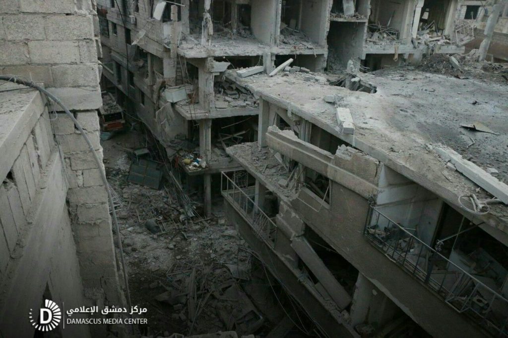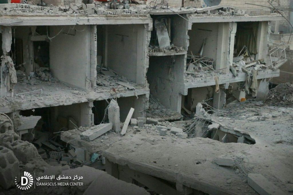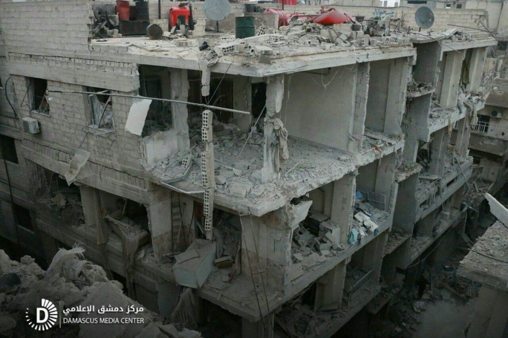 Additionally, the strikes inflicted great material damage on civilian properties. Al-Jazeera reported that the shelling “led to the suspension of the field hospital in the city of Saqba”.