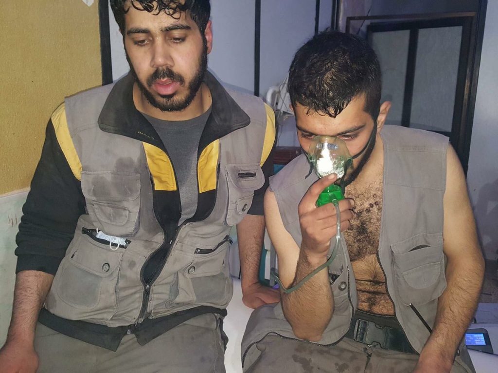 The injured all suffocated due to the internationally banned chloride gas. Members of the Syrian Civil Defence were also reportedly injured in the raid.