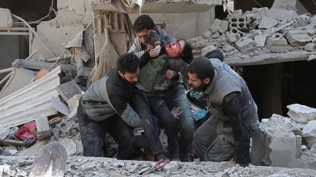 @Dmcpress_ar  tweeted, “Massacre of a whole family and injuring dozens of civilians, including women and children, as a result of intensive air raids and explosive barrels fired by helicopter flying on the city of Misraba.”