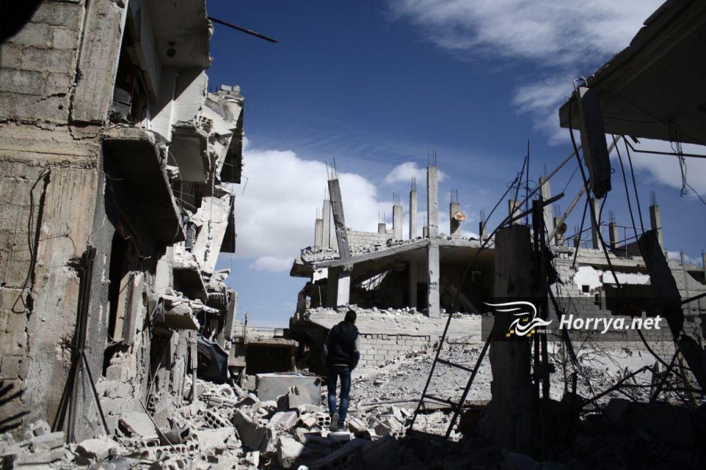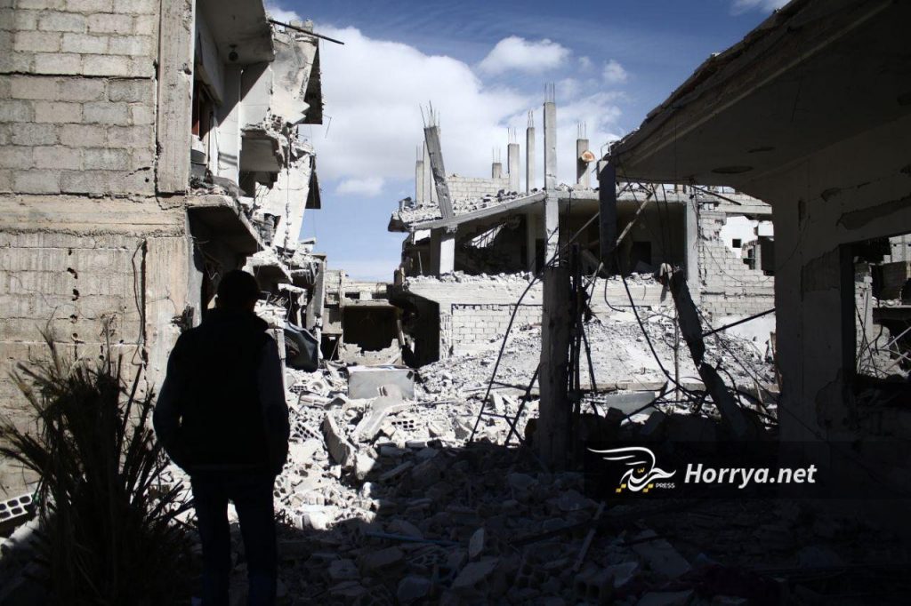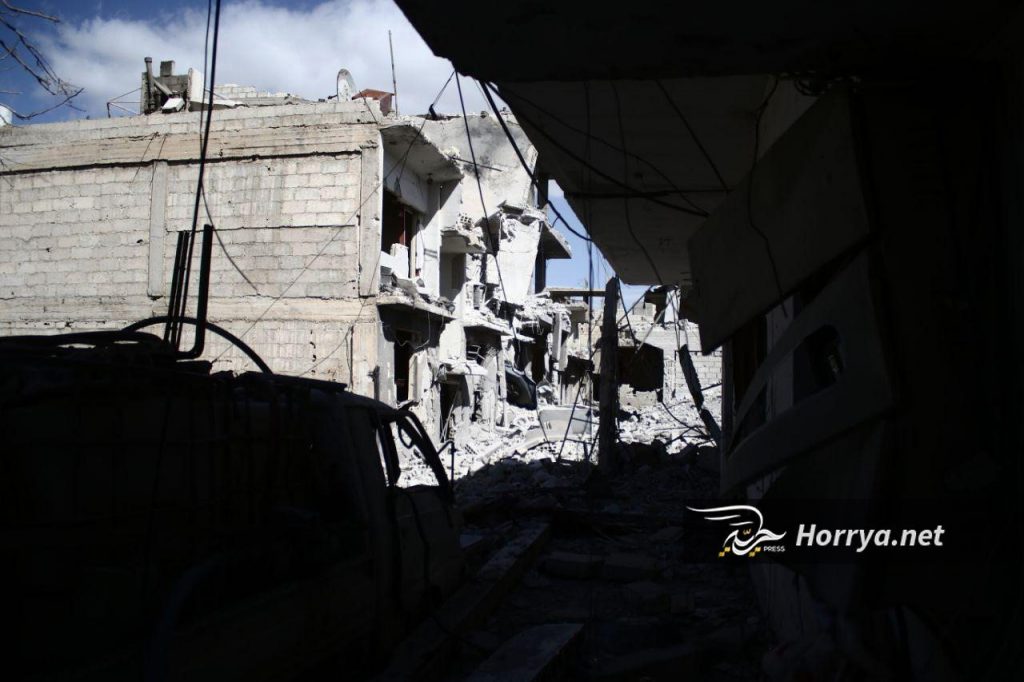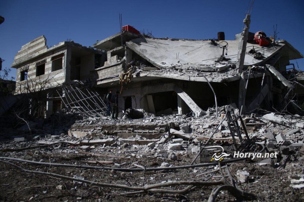 Syria Noor referred to the event as “a massacre”, citing The Damascus Media Center who said that said “Russian warplanes targeted the town of Jisreen with 13 Russian raids since the morning, which resulted in five martyrs and the injury of dozens more in an ever increasing toll. The center pointed out that the hysterical bombing coincided with the entry of humanitarian aid convoy to al-Ghouta today noon.”