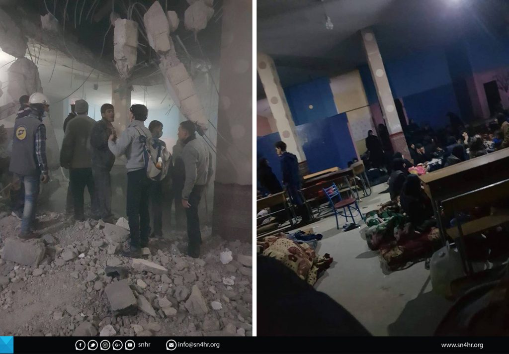 The airstrike targeted a building that civilians turned into a shelter in Erbeen. Syrian Civil Defense (SCD) said on its Facebook page that among the dead were 15 children and two women who died as a result of aerial bombardment, believed to be by the regime warplanes which targeted a shelter that housed several families.