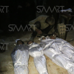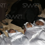 SMART Agency reported ” Aerial bombing of warplanes likely to be Russian on the town of Ein Tarma ,Saturday, March 17th, 2018, killing 16 civilians. Among the victims is a whole family of a mother, four children and six other children. The cities and towns of the eastern Ghouta have been subjected to a military operation by the regime forces and their loyal militias with Russian air support since mid-February, causing the death and injury of hundreds of civilians and damage to the infrastructure, despite UN Resolution 2401 on a 30-day truce in Syria and the lifting of the siege on cities and towns including al-Ghouta.”