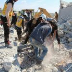 Civil defence teams worked to remove civilians from the rubble. Those wounded included two correspondents from local news outlet Halab Today TV.