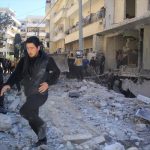 Russian forces destroyed large parts of Ariha according to a source on the ground.