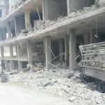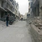 There was some confusion regarding who was responsible for the strikes. Sham Network claimed that the town was hit by a “double aerial bombardment” – first by a regime helicopter that dropped “several explosive barrels on the city […] followed by a direct raid by Russian warplanes on Al-Qalaa district in the center of the city.”