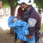 In another variation of the victim’s name. the Syrian Network for Human Rights said “The infant Amina Ayman al Rez was killed as Syrian regime helicopters dropped gas cylinders on Al-Habit village in Idlib governorate southern suburbs, on September 9th.”