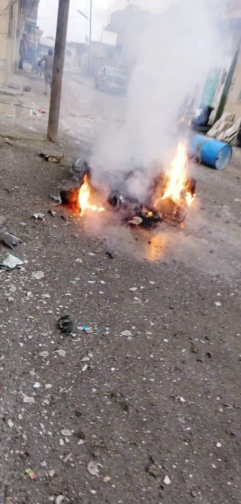 Additionally, an image of a civilian being burned alive was published alongside a photograph of a child. According to sources, the victim was that child who was burned by the artillery ammunition whist riding his bike. His sister was also reportedly killed in the bombardement.