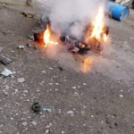 Additionally, an image of a civilian being burned alive was published alongside a photograph of a child. According to sources, the victim was that child who was burned by the artillery ammunition whist riding his bike. His sister was also reportedly killed in the bombardement.