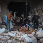 In what has been described my local media as a massacre, between eight and 14 civilians were killed, including women and children, and “dozens” were injured, following artillery strikes on the residential neighbourhood of Khan Sheikhoun, Idlib.
