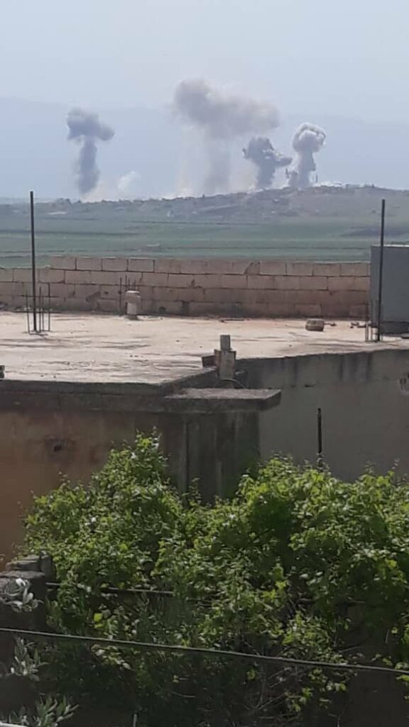 Qasioun News wrote that “more than 100 artillery shells and eight raids by warplanes targeted the town”, blaming the regime. In an earlier post, Qasioun News reported Russian airstrikes.