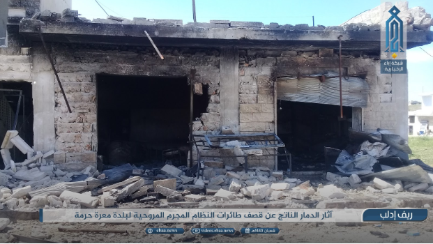 Between one and three civilians died and up to five more were wounded in an alleged Russian or regime airstrike on Ma’aret Hrema in Idlib, local media reported, adding that cluster bombs have been used in the attack.