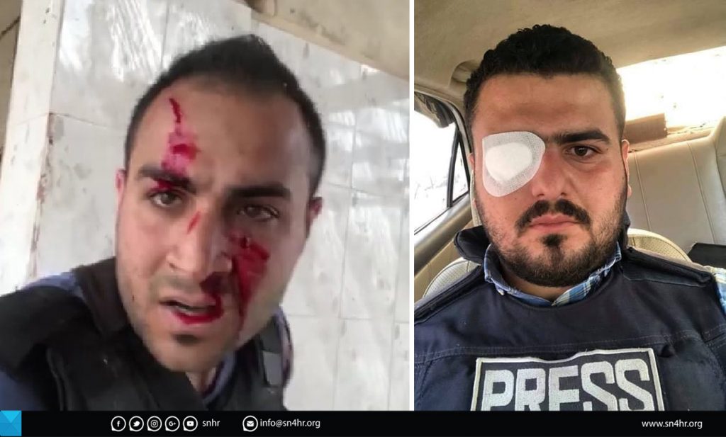 Al-Khalaf told the Syrian Journalists Association that “while he was with his colleague Al-Abbas covering the shelling in an area near the town of Habit, a Su-24 warplane undertook an airstrike near them after a Russian reconnaissance aircraft flew. That resulted in Al-Abbas/Dahnoun being slightly injured by shrapnel in the face, neck and shoulder.”