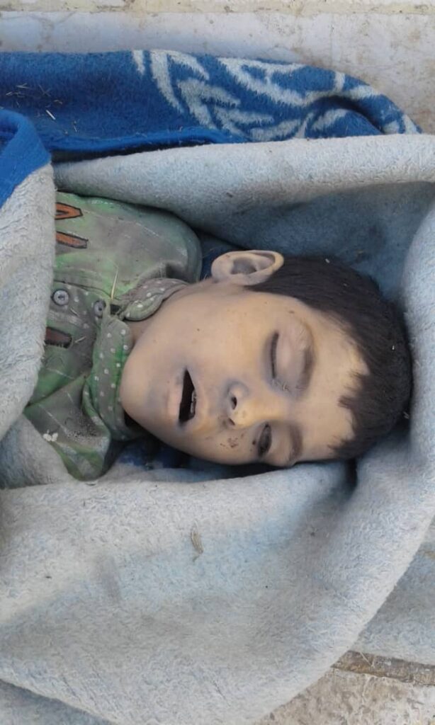 Many sources reported that three children were killed from the same family in the attack, named by Syrian Network for Human Rights as Mustafa, Ali and Ahmad Ayman Sarhan. Hossam Sarhan wrote on Facebook that the boys were the children of Ayman Sarhan. The discovery of their bodies was documented in a video by Step News Agency.