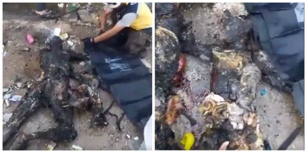 In a tweet, @so_ria98 reported that Russian warplane committed a “horrific massacre” of eight civilian fatalities and dozens wounded. In a later post, the source claimed the death toll had risen to ten civilians, most of whom were displaced. Several sources posted graphic videos of charred bodies at the site of the airstrike.