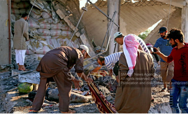 While most sources blamed the Syrian regime for the strikes, Resala Post wrote that Russian aviation targeted the town with four airstrikes. Shaam News Network blamed both Russia and the Syrian regime.