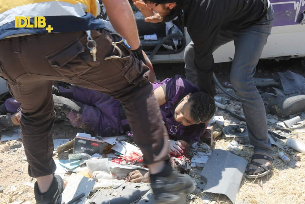 In October 2020, Human Rights Watch published a report including their investigation into this particular incident. According to the report, the incident occured around 10.30 AM. According to Obeida Zikra, the Syrian Civil Defence team leader in the city, three people were killed and two wounded. The report states: “The ambulance was a white van carrying the Violet organization’s emblem on the side and, although there was nothing to indicate that it was a military vehicle, it did not have a distinctive emblem on the roof that aircraft could identify.”