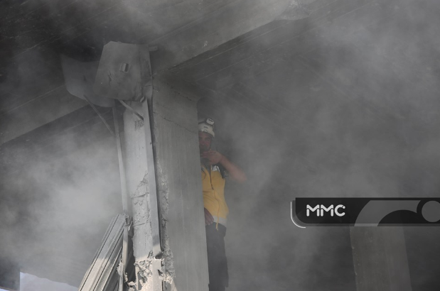 Syria Civil Defense wrote that “a fire broke out in a store on the outskirts of the city of Ma’aret al-Nu’man in Idlib countryside, after it was targeted by an air strike, as the fire was extinguished by firefighting teams.”