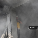 Syria Civil Defense wrote that “a fire broke out in a store on the outskirts of the city of Ma’aret al-Nu’man in Idlib countryside, after it was targeted by an air strike, as the fire was extinguished by firefighting teams.”
