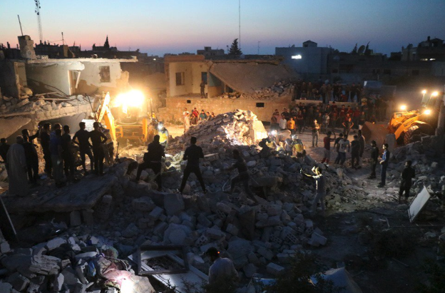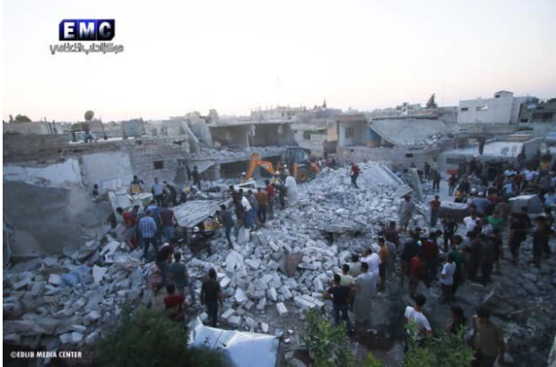 An airstrike local sources believed to be Russian struck a residential neighborhood in Saraqib. According to the Syrian Civil Defense forces who were at the scene, four high-explosive missiles struck a house and killed a family of five, including two women and two children. The source claimed seven other civilians were wounded, including two children.