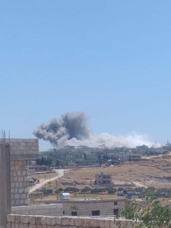 @modar28 tweeted: “10 aircraft (Russian and Assad) bomb the city of Kafr Nabl with more than 25 airstrikes, in conjunction with the flight of reconnaissance aircraft to ensure the destruction of all neighborhoods and neighboring villages, and dozens of martyrs and wounded, most of them children, women and elderly.”