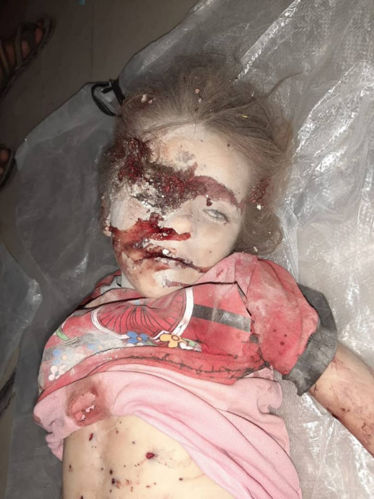 Syrian Network for Human Rights reported that “the children Arij, Saher and Samer Abdul Qader Abdul Aal were killed, along with their father and their mother Yasmin Taher Hafyan, as Syrian regime forces dropped barrel bombs on west of Mhambel town in Idlib governorate western suburbs, causing a massacre, on July 5th.”