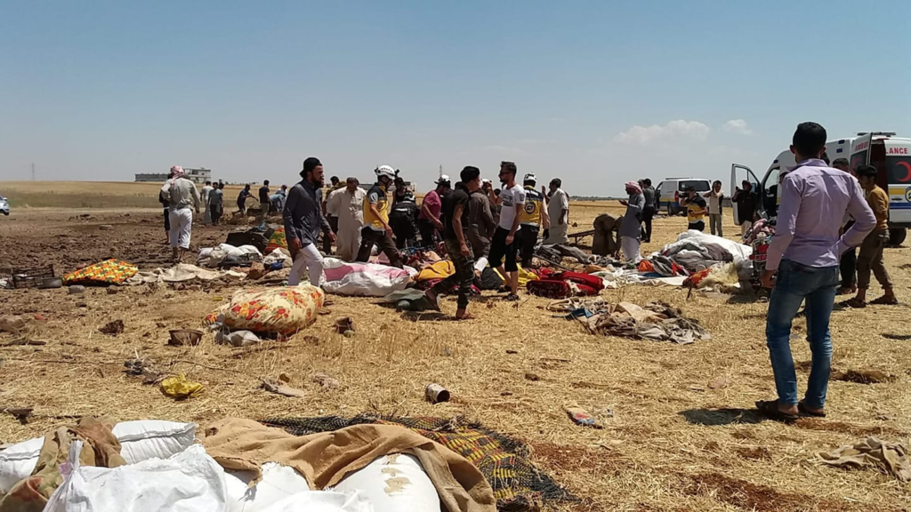 Syrian Civil Defence teams rushed to the site to recover the bodies of the victims and bring the injured to medical points.