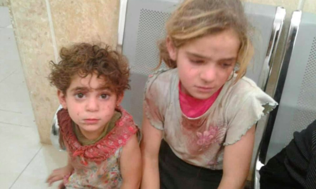@Fayyad_sattouff posted a photo of two injured children, writing that “these two injured children woke up this morning to find themselves with their pregnant mother under the rubble of their house in Al Latamina and the remains of their martyr father scattered all over the place due to the flight of the Russians.”