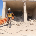 According to the Syrian Civil Defense, “one man was killed and four others, including a woman, were injured by the targeting of the town of Jabala in the village of Idlib with three air raids.”