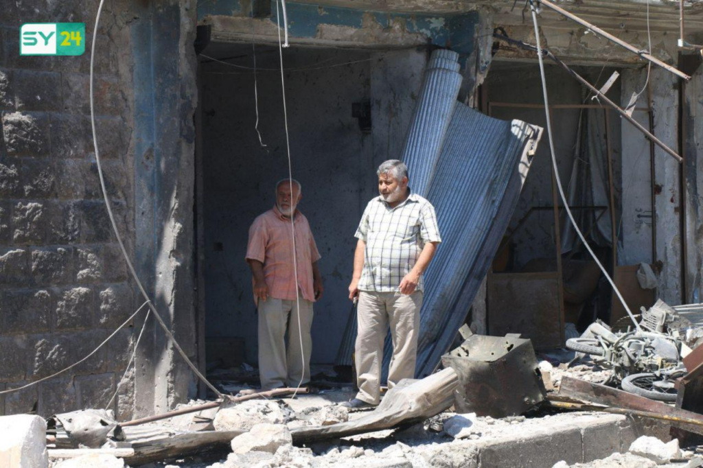 Masr Al Arabiya reported that the main streets of the town, which were crowded with civilians, were targeted, putting the death toll at nine civilians. According to the source, three displaced people from the village of Hamirat were among the victims. Many sources, including @Sy24ria and @ShahbaPress, reported “dozens” of wounded.