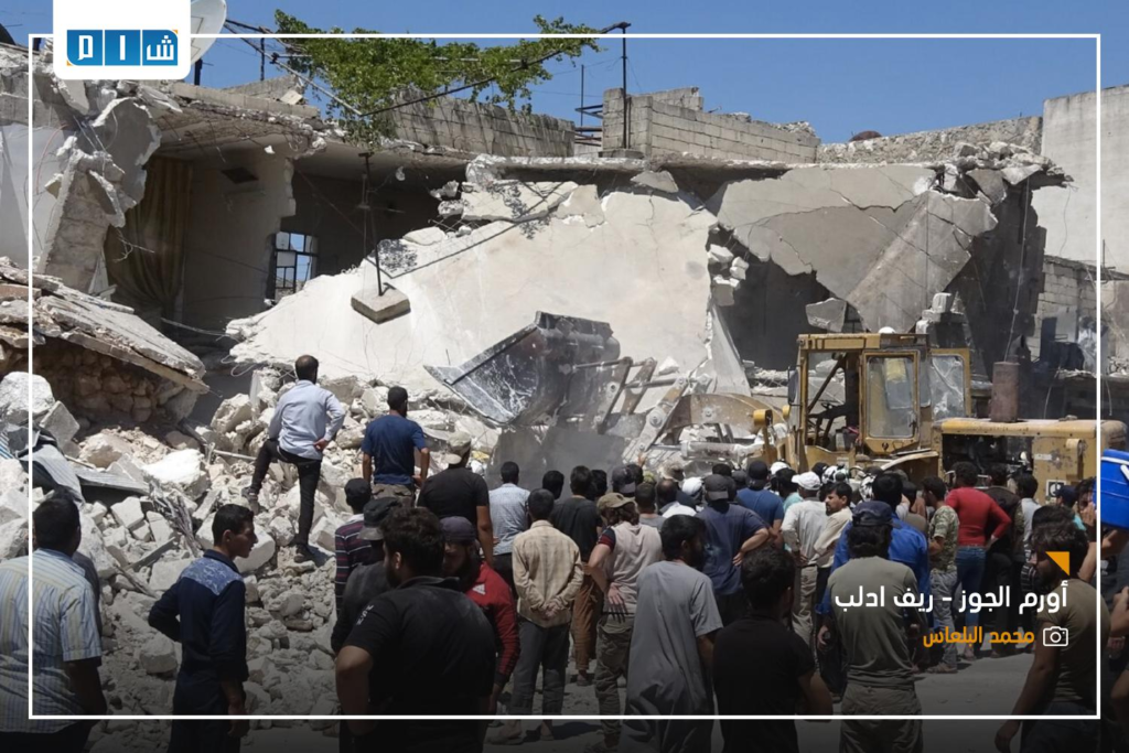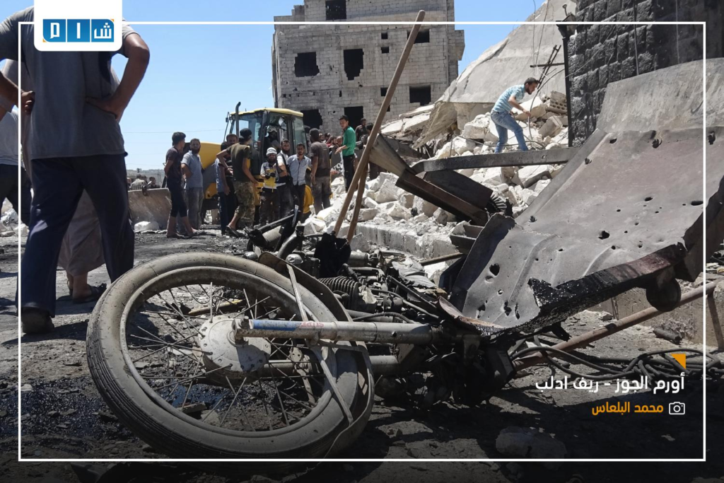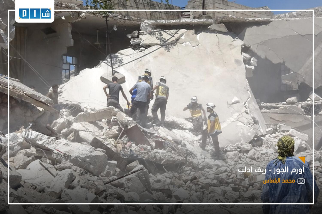 Up to 12 civilians, including children, were killed and up too 22 others were injured in alleged Russian or Syrian regime airstrikes on Urma Al Jouz, Idlib governorate, on July 21st, 2019, according to local sources.