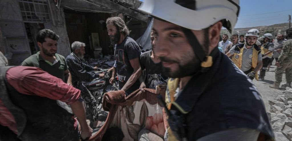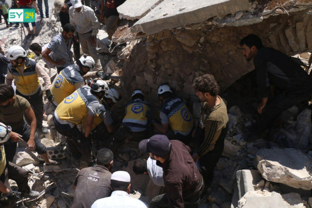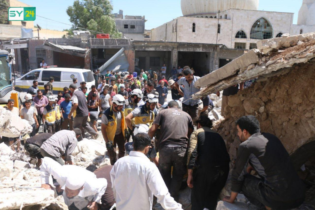 The Syrian Civil Defence in Hama (@civil_hama) tweeted that “the White Helmets team from the western Hama sector rushed to the place to support the rest of the civil defence teams there, where it worked to recover the martyrs and aid the injured.”