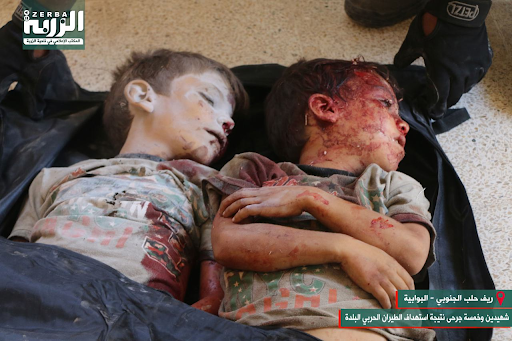 The same source elsewhere reported that “the regime warplanes attacked al Bawabiya which led to the death of two children, five wounded civilians and huge destruction.”