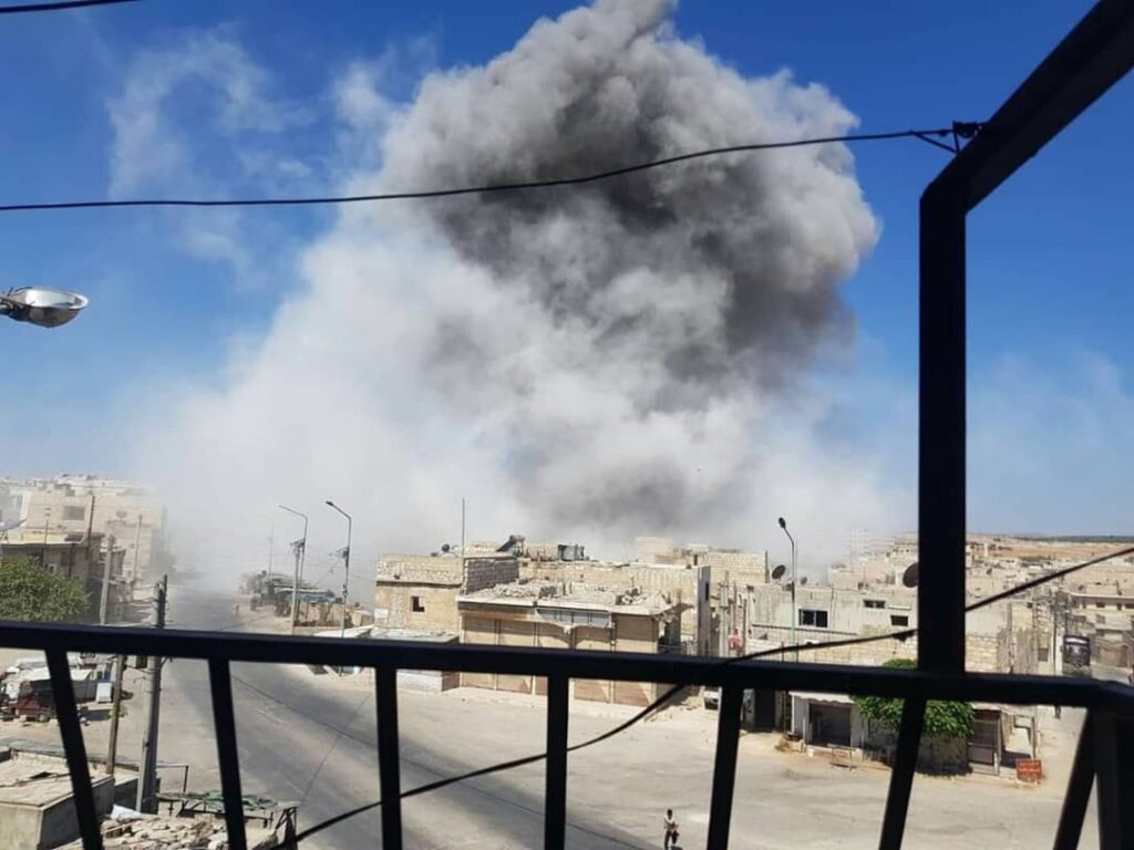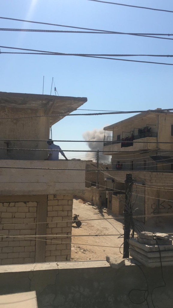 The Syrian Network for Human Rights wrote that “at least two civilians one of them a woman, killed as fixed-wing Syrian regime warplanes fired a missile northeast of Al Atarib city in Aleppo governorate western suburbs, on July 25, 2019.”