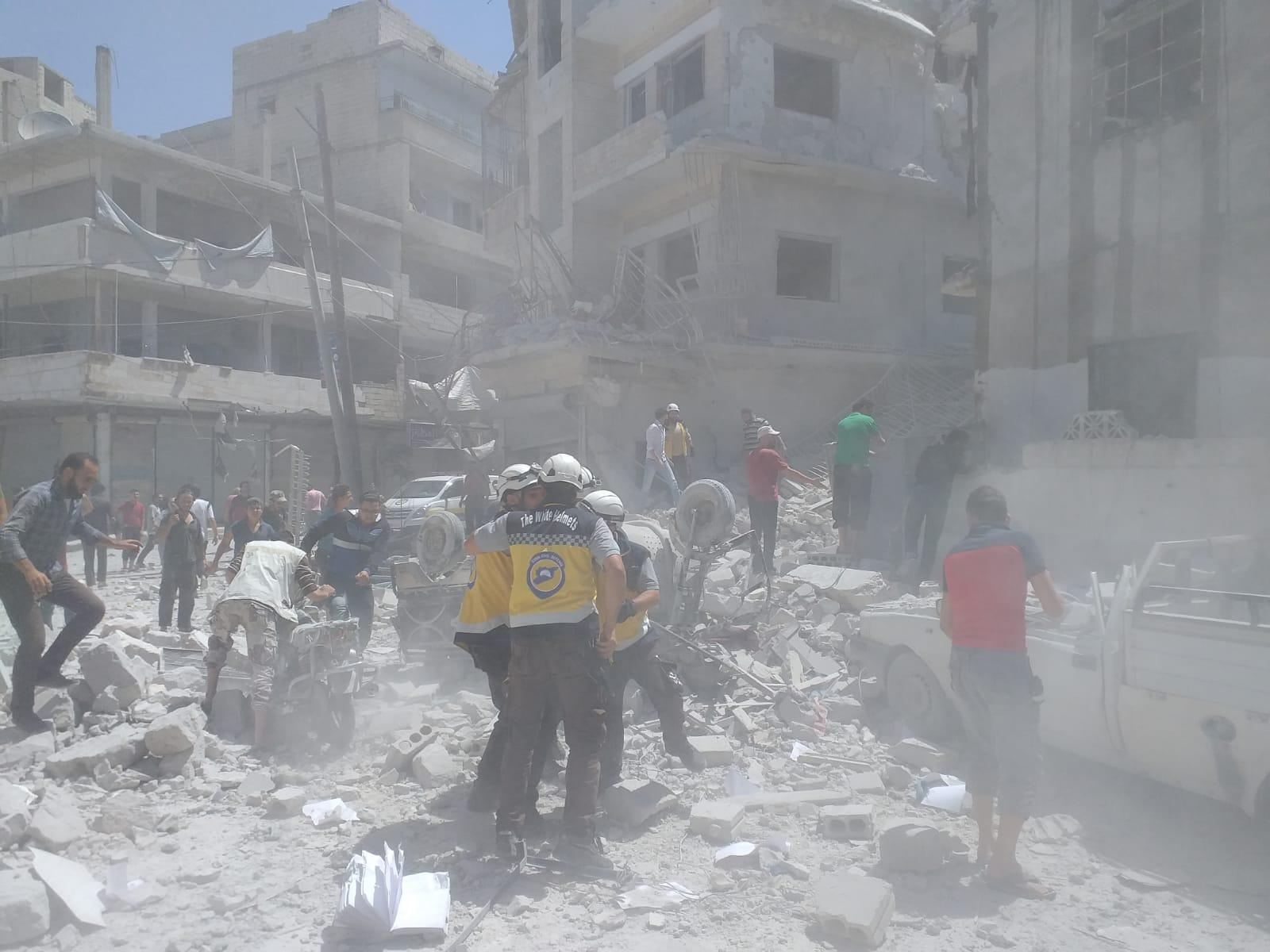 Up to 13 civilians were reportedly killed and at least 22 others were wounded in alleged Russian or Syrian regime airstrikes on Ariha in Idlib, on July 27th, 2019 according to local sources. The airstrikes hit the western neighborhood and a popular market, and France 24 reported that the airstrikes hit two residential buildings.