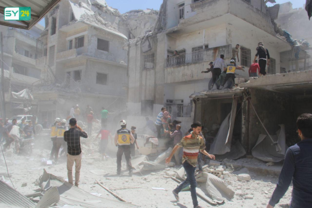 Up to 13 civilians were reportedly killed and at least 22 others were wounded in alleged Russian or Syrian regime airstrikes on Ariha in Idlib, on July 27th, 2019 according to local sources. The airstrikes hit the western neighborhood and a popular market, and France 24 reported that the airstrikes hit two residential buildings.