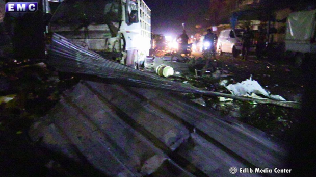 According to @press_jesr, most of the injured are in a critical condition. Enab baladi reported that an L-39 warplane targeted a popular market inside the city.