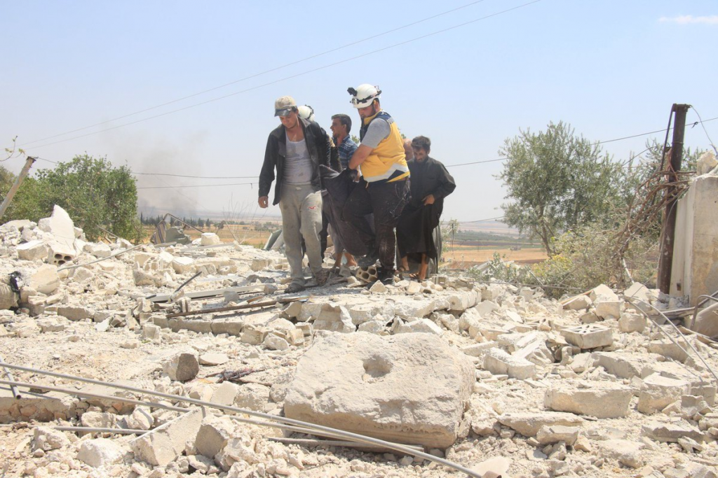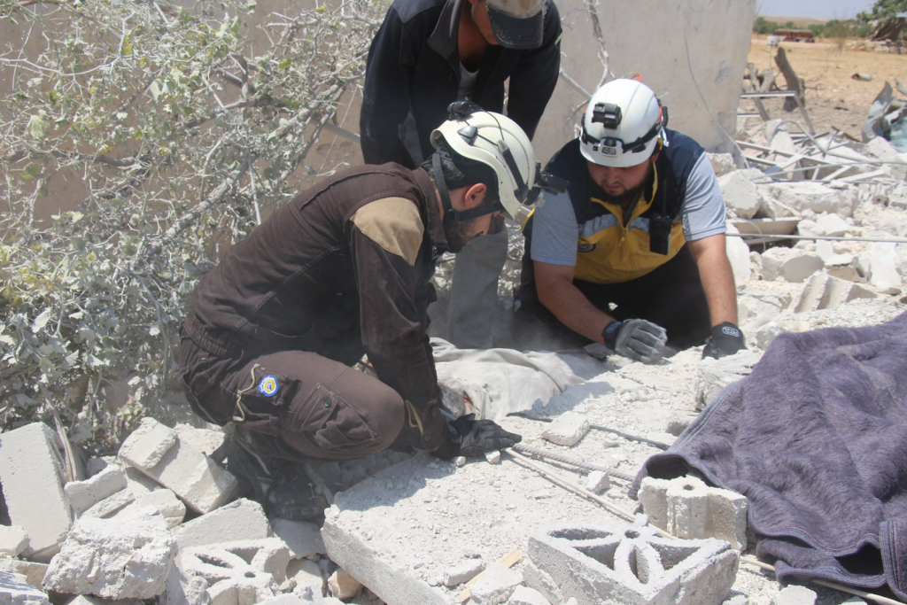 Shaam News stated that “Russian warplanes targeted Kafar Tab farm in Khan Sheikhoun in several raids, which hit the house of a family of eight people. […] Activists reported four martyred civilians, with missing family members still being searched for amongst the rubble.” The house was destroyed with its residents.