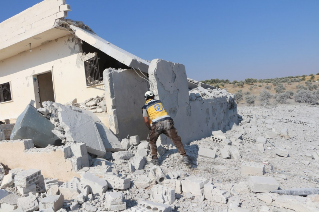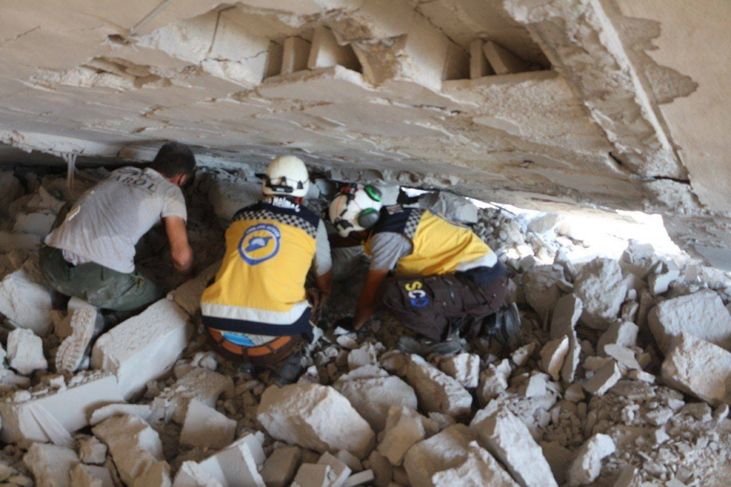 Syria Civil Defense stated that “one man was martyred and three others were injured as a result of an airstrike targeting Maarat Horma town in the southern countryside of Idlib.” A video posted by SCD shows White Helmets removing the man killed from the rubble of the building.